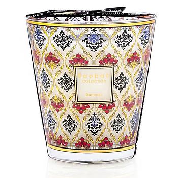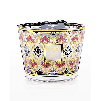 The Roma scented candle is covered with a gold and multicoloured silk-screen print depicting the Colosseum's legendary architecture.